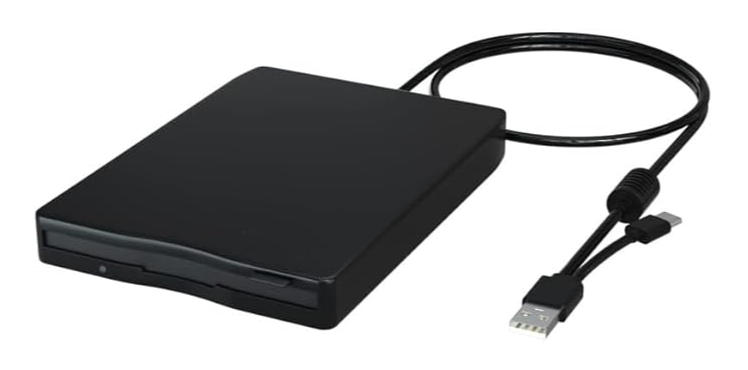 USB外付けフロッピードライブ。パッケージ入り新品。ドライバー不要。Old Mac やWindows マシンとのデーターのやり取りに威力を発揮増します。最新 Mac でPC フォーマットのフロッピーの読み書きが可能です。USB-A, USB-C 端子つき。最新Macにも直接接続可能。